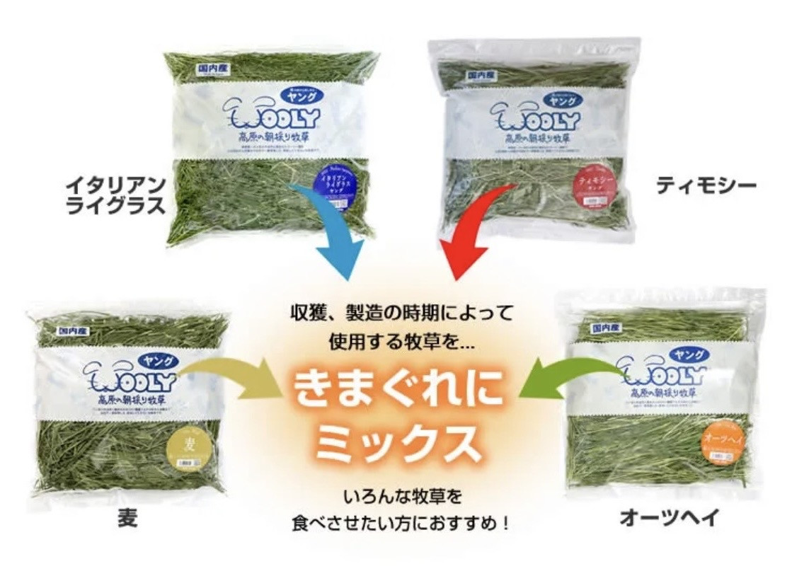 使用されるメイン牧草は、収穫や製造時期に応じて「きまぐれ」にブレンドした商品